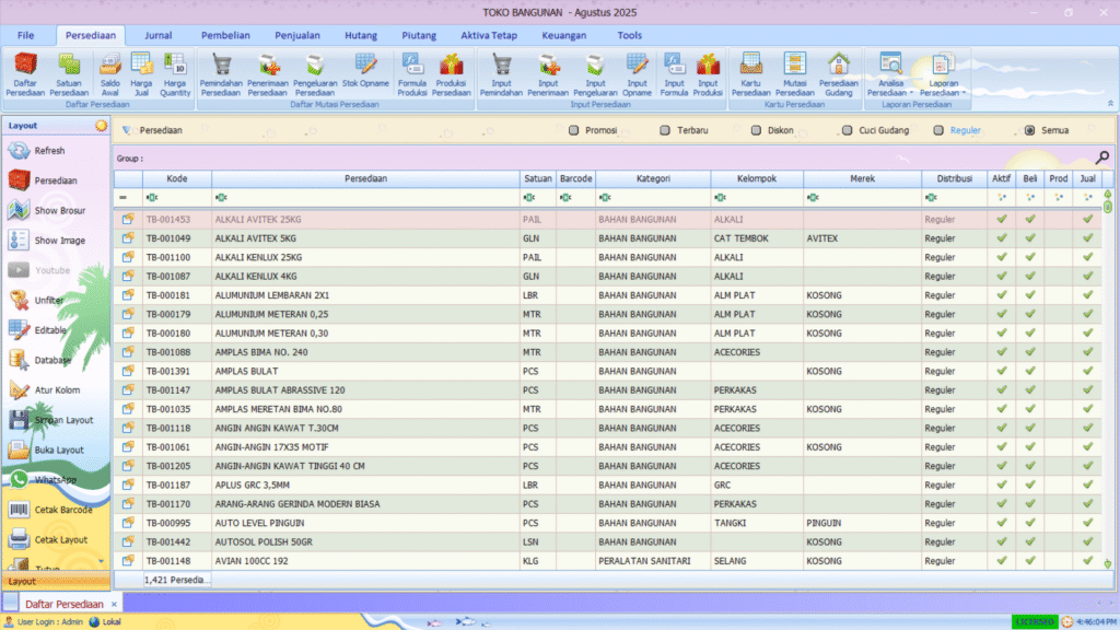 - Klik Daftar Persediaan